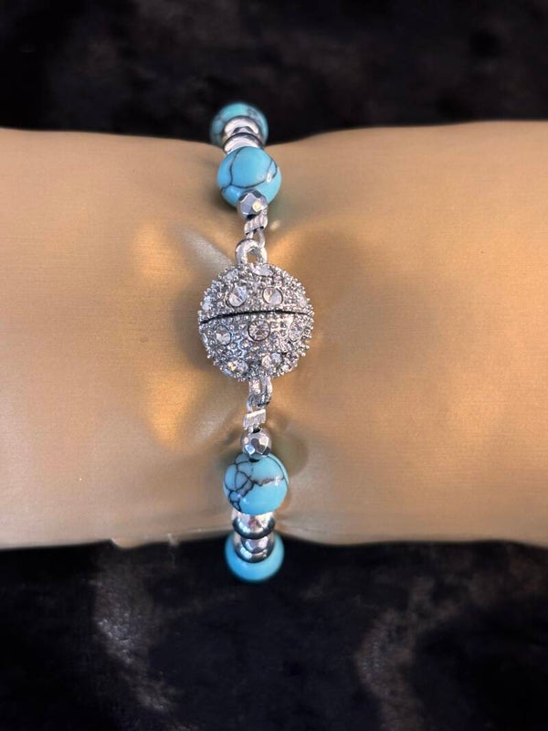 Zomerse set van howliet turquoise bleu. Armband, ketting en oorbellen