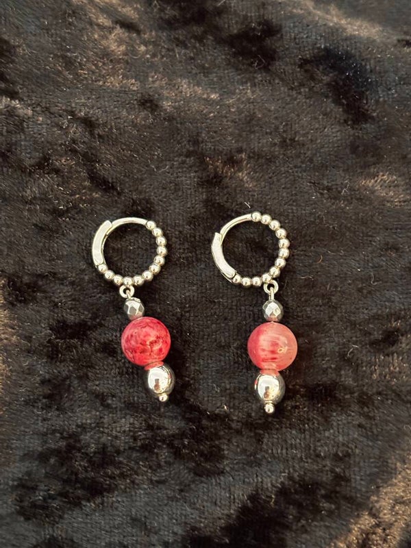 Deze set bestaat uit ketting, armband en oorbellen. Deze set is gemaakt van rose aventurijn(edelsteen) en roze kwarts(edelsteen). Verder zijn er in deze set zilverkleurige elementen verwerkt. Oorbel haken en boeislot van de ketting zijn gemaakt van hoogwaardig DQ metaal. Aan het boeislot zit een hartje van RVS(zilverkleurig).