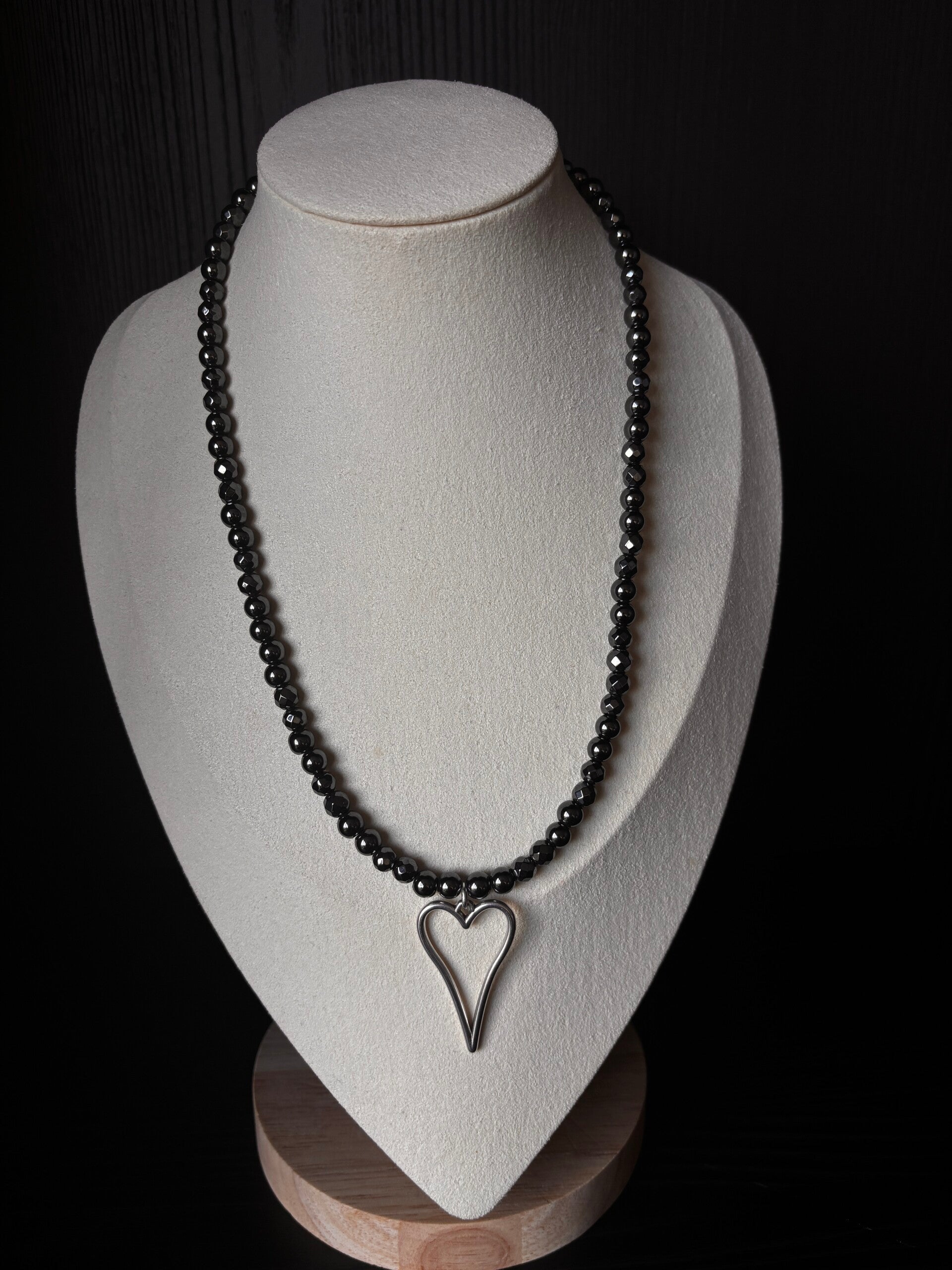Deze ketting is gemaakt met hematiet(edelsteen) kralen zowel facet geslepen als rond. De bedel is van DQ metaal verzilverd.